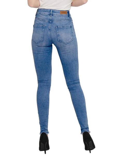 Jeans Only. Jean moyen. Cinq poches. Monter skinny. Effet usé. mid rise. Fermeture bouton et zip. Chevilles effilochées.