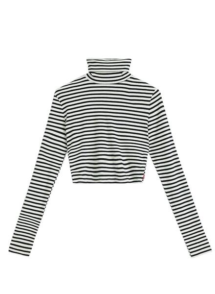 Pull Levis. Couleur noir et blanc. Col montant avec tour. Pull avec conception Crop. Manche longue. Tissu côtelé. Printed à Rayures.