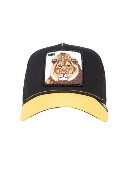 Casquette Goorin Bros. Modèle Animal Ferme. Couleur noir et jaune. Roi Lion. Dos en filet. Sangle réglable. Illustration brodée sur le partie avant.