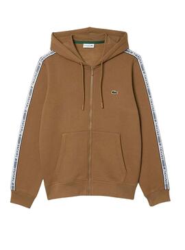Sweat Lacoste Jogger Fermeture éclair Brun Homme