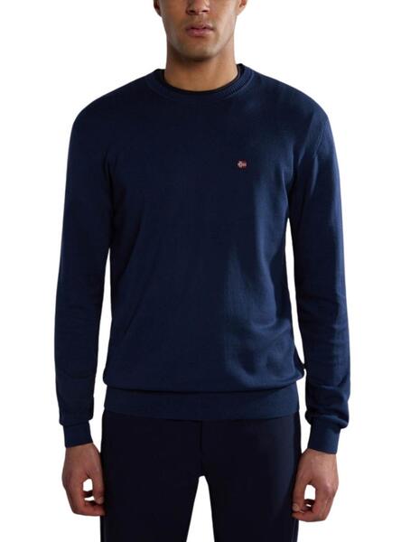 Maillot Napapijri. Couleur bleu marine. Modèle Decatur. Logo brodé. Col rond. Extrémités côtelées. Coupe régulière.