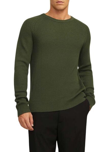 Maillot Jack and Jones. Modèle Pannel. Couleur verte. Tissu côtelé. Col rond. Coupe ajustée. Extrémités élastiques. Étiquette tissée de la marque en bas.