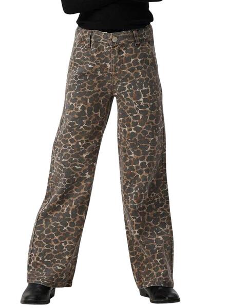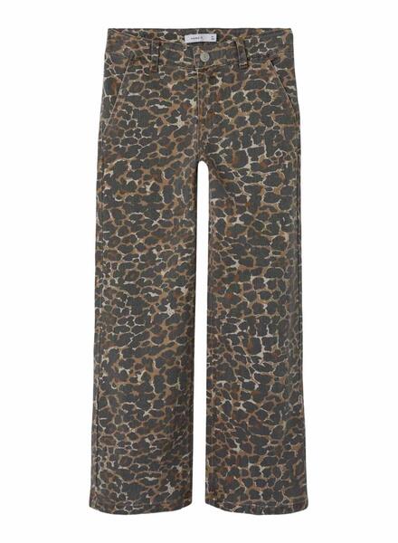 Pantalon Name It. Imprimé léopard. Coupe large. Fermeture à crochet et à glissière. Jambe large. Poches latérales. Poches arrière. Taille régulière.
