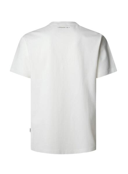 T-shirt Pepe Jeans. Modèle Dale. Couleur blanc cassé. Col rond. Manches courtes. Logo imprimé sur la poitrine. Coupe régulière. Détails en noir. Étiquette latérale.