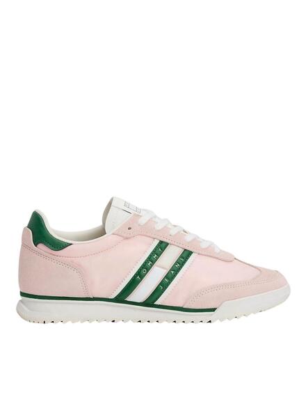 Baskets Tommy Jeans. Modèle Retro Runner. Fermeture à lacets. Couleur rose. Détails en vert. Logo de la marque sur la languette. Semelle en caoutchouc.