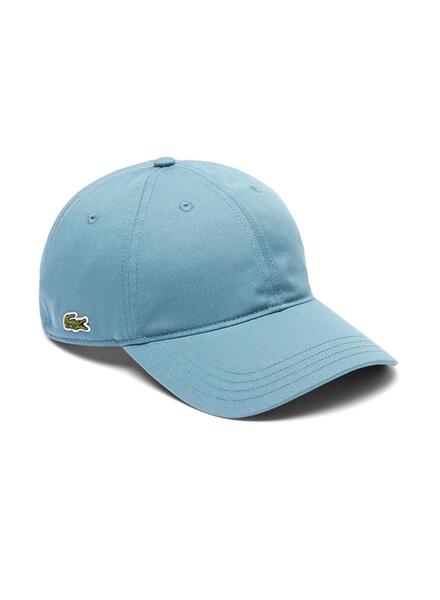 Casquette Lacoste. Couleur bleue. Unisexe. Sangle réglable avec boucle. Rayure Lacoste à l'intérieur. Crocodile brodé sur le côté droit. Sergé de coton biologique.