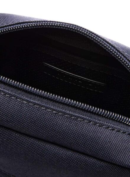 Sac Lacoste. Format bandoulière. Tissu recyclé. Couleur marine. Poche extérieure avec fermeture éclair. Poche en filet intérieure. Fermeture éclair. Bandoulière ajustable. Crocodile brodé sur le devant. Dimensions: 16,5 x 21 x 7 cm.