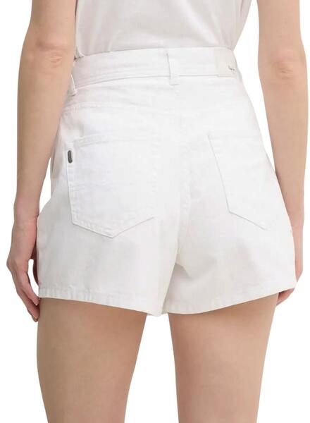 Short Pepe Jeans. Modèle Skort. Couleur blanche. Style jupe-culotte. Fermeture avec bouton métallique latéral. Poches plaquées à l'arrière. Poches latérales. Coupe régulière. Taille haute.