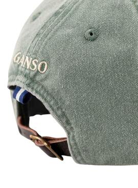 Casquette El Ganso. Modèle de base. Couleur verte. Tissu en coton lavé. Effet usé. Logo brodé à l'avant. Marque brodée à l'arrière. Détails en beige. Bande arrière réglable. Œillets de ventilation.