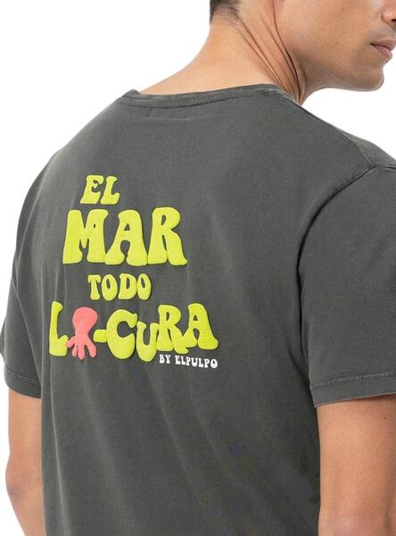 T-shirt El Pulpo. Modèle en relief. Couleur gris. Manches courtes. Col rond. Logo de la marque sur la poitrine. Imprimé en relief dans le dos. Coupe régulière.
