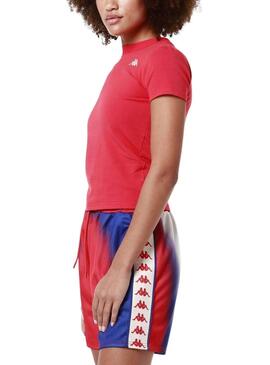 Maillot Kappa. Modèle Luise. Couleur rouge. Manches courtes. Col rond. Bande avec le logo de la marque sur la manche droite. Logo de la marque brodé.