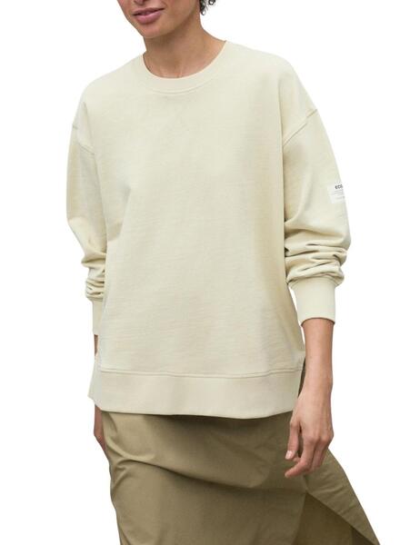 Sweatshirt Ecoalf. Col rond. Manches longues. Couleur beige. Finitions côtelées. Couture décorative. Épaules tombantes. Texte : Because there is no planet B imprimé dans le dos. Étiquette de la marque sur une manche. Ouvertures latérales. Coupe ample.