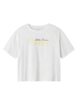 T-shirt Name It. Modèle Frajane. Coupe régulière. Col rond élastique. Manches courtes. Impression de papillons sur la poitrine. Épaules tombantes.