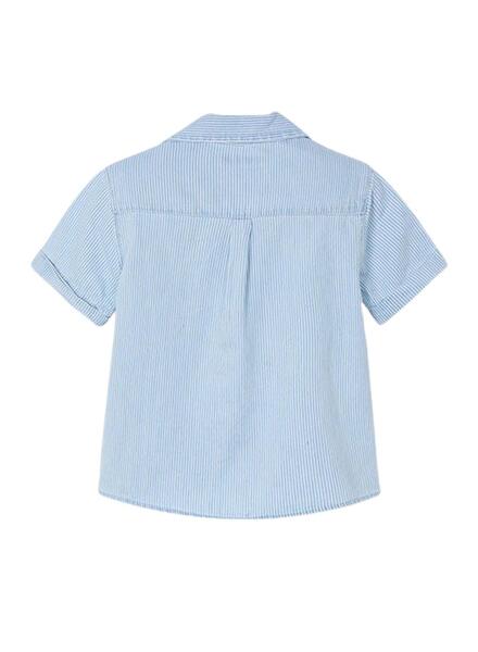 Chemise Mayoral. Tissu denim. Imprimé à rayures. Couleur blanc et bleu. Poche sur la poitrine. Fermeture à boutons. Col en V.