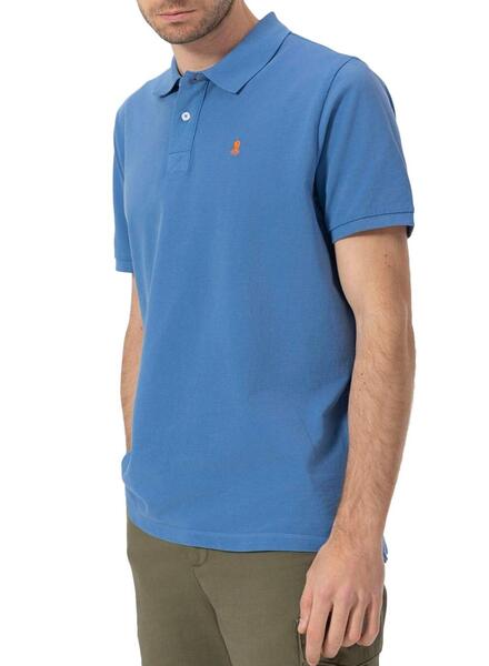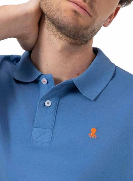 Polo El Pulpo. Modèle de base. Couleur bleue. Col avec deux boutons. Logo brodé sur la poitrine en rose. Manches courtes. Coupe régulière.