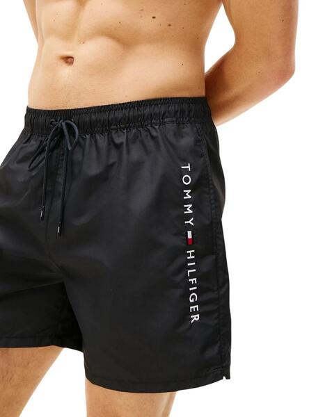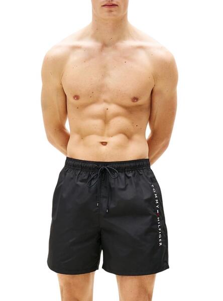 Maillot Tommy Hilfiger. Modèle Medium Drawsting. Couleur noir. Taille élastique avec cordon. Marque imprimée. Poches latérales. Poches arrière plaquées. Longueur moyenne.