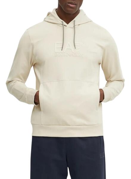 Sweat-shirt Emporio Armani EA7. Couleur beige. Capuche avec cordon ajustable en contraste. Extrémités élastiques. Coupe régulière. Manches longues. Logo assorti en relief sur la poitrine.