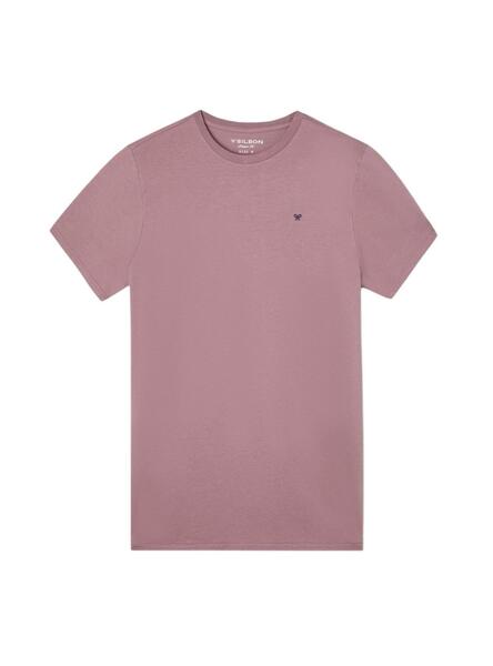 T-shirt Silbon. Modèle Minilogo. Couleur rose poudré. Col rond. Manches courtes. Coupe régulière. Logo brodé sur la poitrine en fil bleu marine. Style basique.