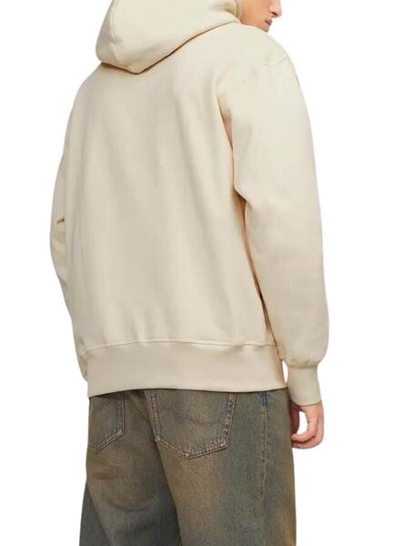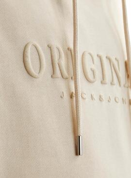 Sweatshirt Jack and Jones. Modèle Freder. Couleur beige. Capuche avec cordon ajustable. Logo en relief sur la poitrine assorti à la sweatshirt. Extrémités côtelées. Poche kangourou. Coupe régulière.