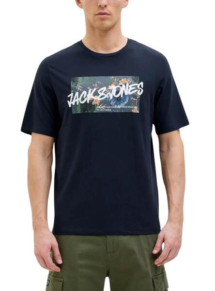 T-shirt Jack and Jones Hawaii Shape bleu marine pour homme
