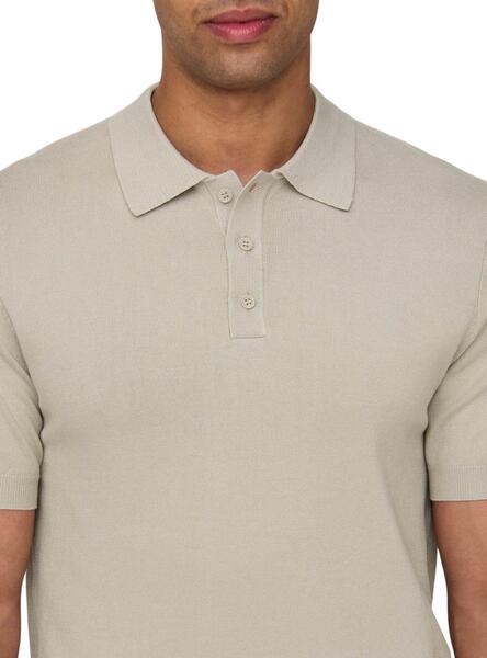 Polo Only and Sons. Modèle Wyler. Style basique. Couleur beige. Col chemise avec fermeture à trois boutons. Coupe légèrement ajustée. Manches courtes. Extrémités côtelées. Étiquette latérale.