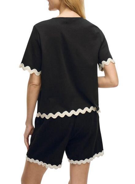 Haut Vila. Modèle Calisa. Couleur noir. Col rond. Manches courtes. Bords festonnés. Coupe régulière.