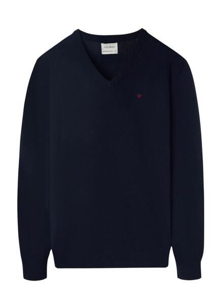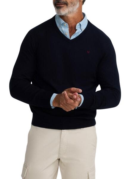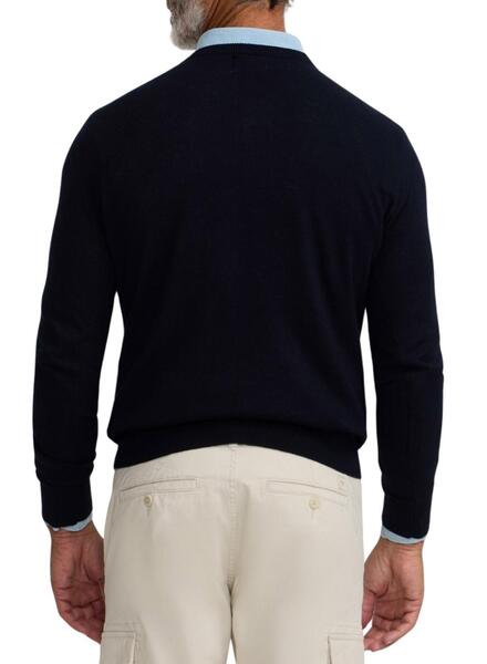 Maillot Silbon. Modèle Vneck. Couleur bleu marine. Col en V. Style basique. Extrémités côtelées. Coupe régulière. Logo brodé sur la poitrine.